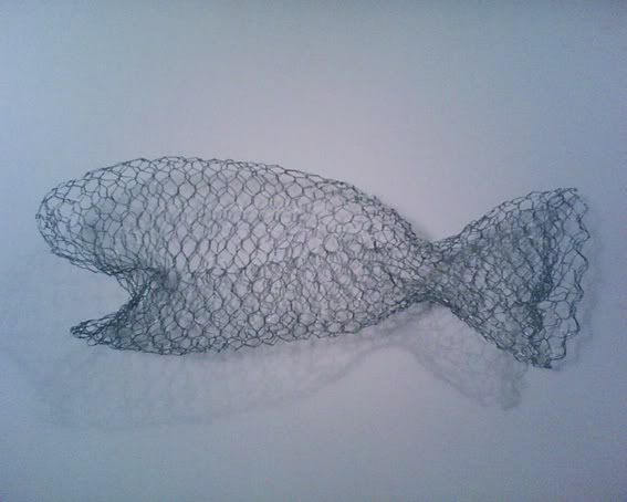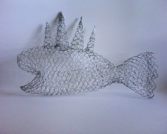 1 – Découpe à la pince dans la bobine de grillage une surface rectangulaire assez grande et commence à donner une forme avec tes petites menottes expertes à ton futur poiskaï.